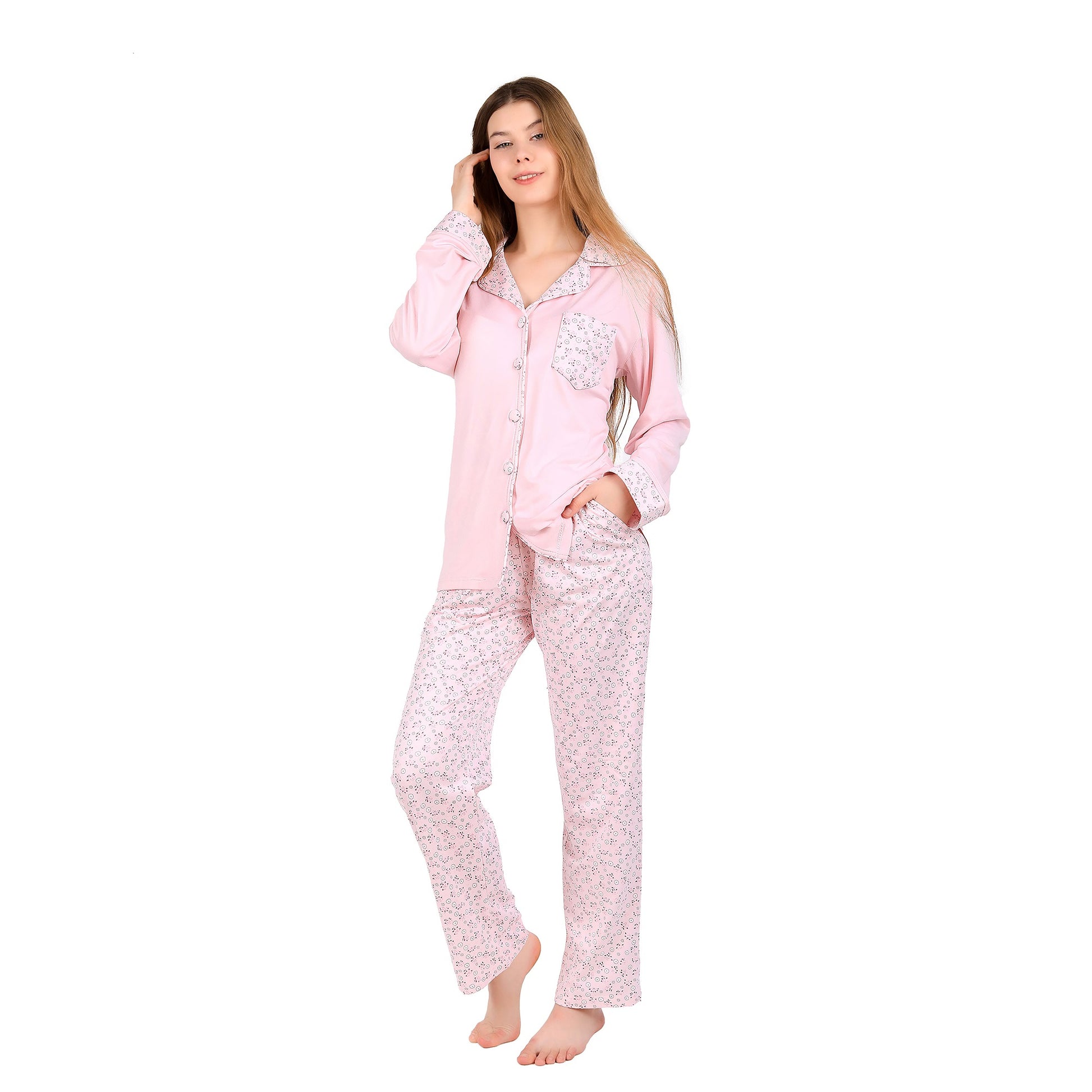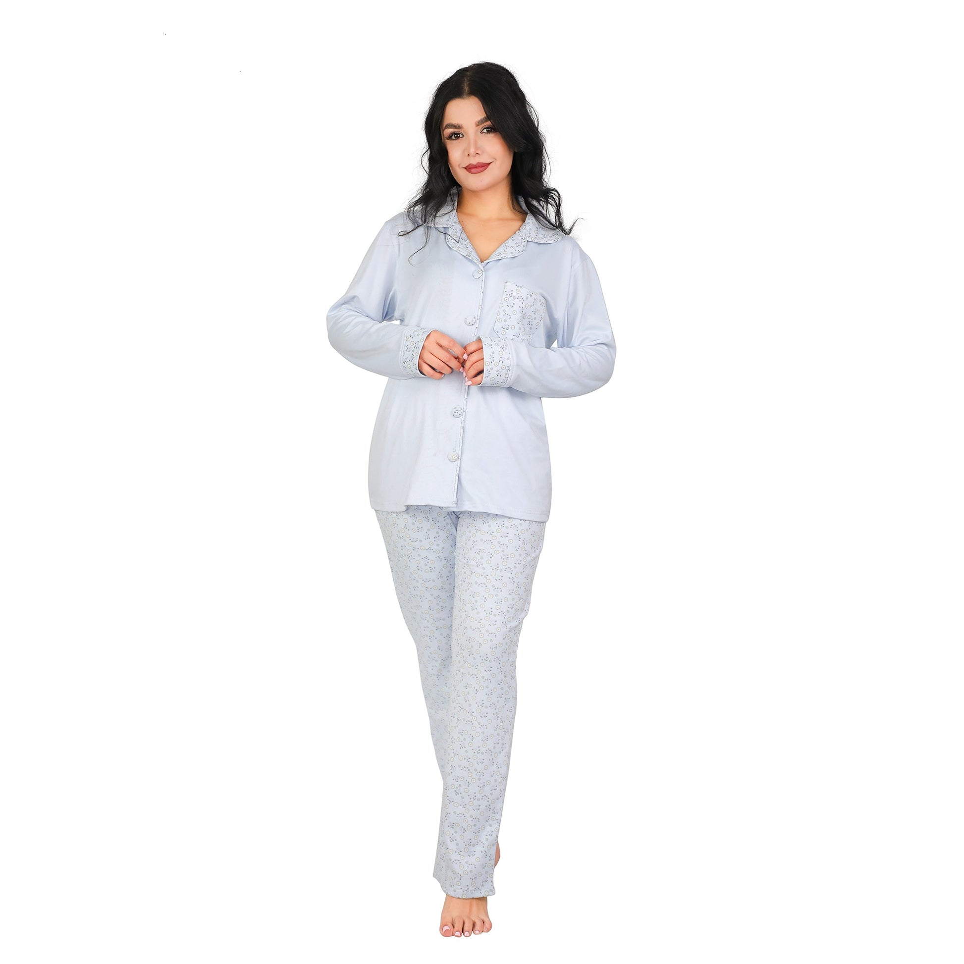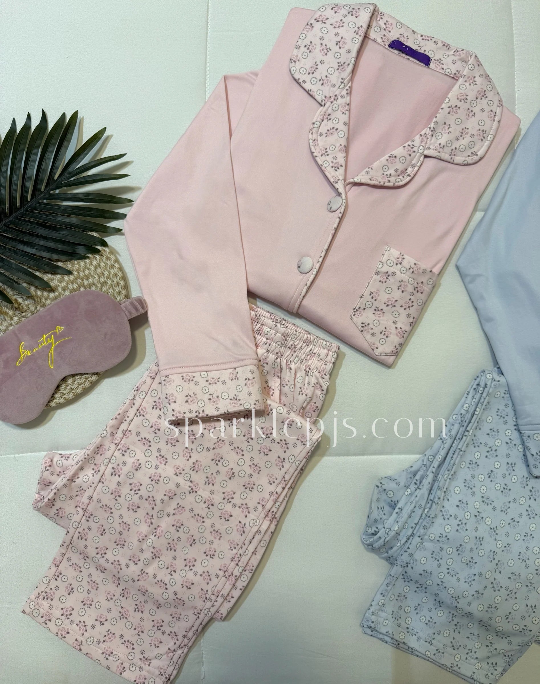 A delicate pajama set designed for peaceful nights and soft mornings. Featuring a charming floral pattern on the collar and pocket it blends simplicity with a touch of elegance. The lightweight fabric gently hugs your skin, offering ultimate comfort for lounging or sleeping in cozy style.